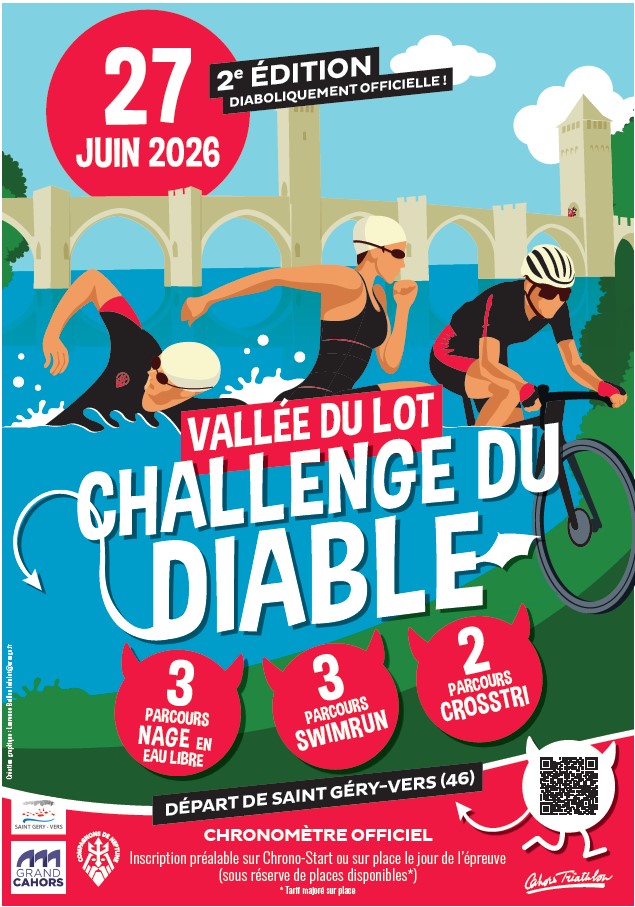 Dimanche 29 juin 2025, Cahors Triathlon, en collaboration avec les Compagnons de Neptune, vous a donné rendez-vous pour une journée d’efforts, de dépassement de soi ou de découverte avec le Challenge du Diable, Swimrun, nage en eau libre, et Cross Triathlon, au départ du camping de l’Arquette à Saint-Géry-Vers, au cœur de la magnifique Vallée du Lot. Cette manifestation, qui s’inscrit déjà comme un temps fort du calendrier sportif régional, promet de superbes parcours dans un cadre naturel exceptionnel.